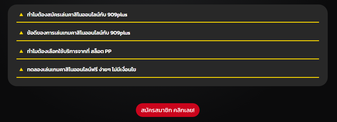 909plus คาสิโนออนไลน์ ไหลลื่น ไม่มีค้าง